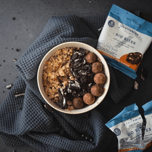 A high protein, high fibre snack in Cocoa & Orange flavour. Each serving contains 1 billion live cultures as well as chloride to aid digestive health. 2